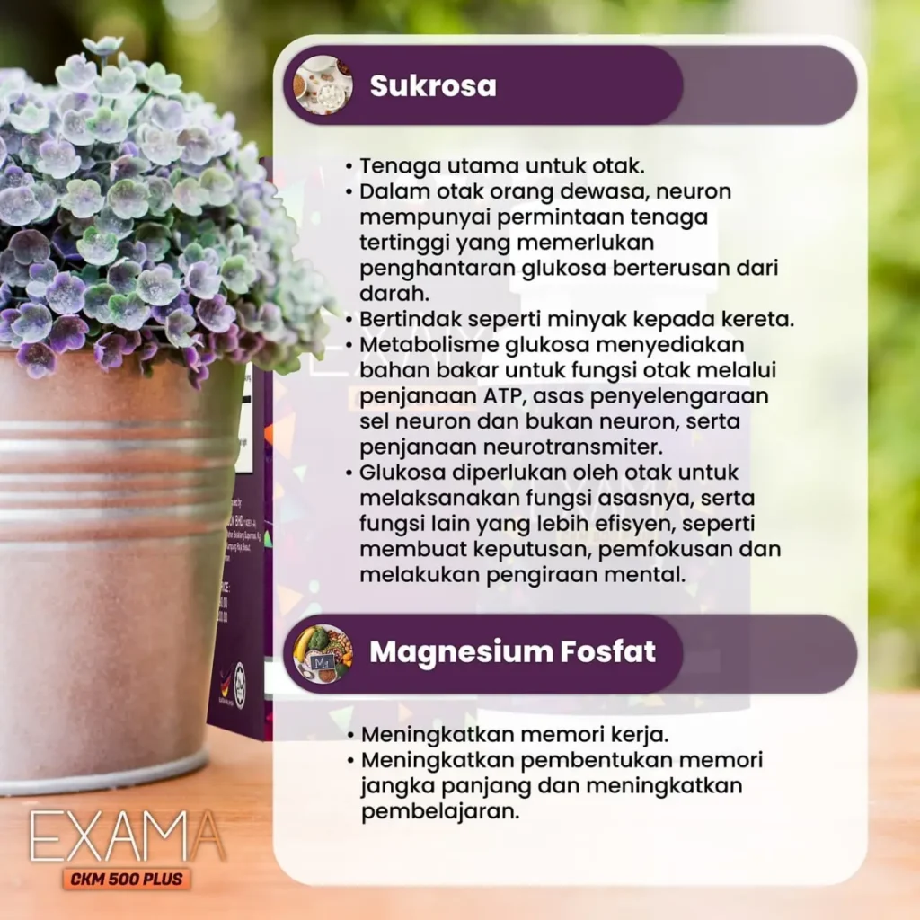 EXAMA bukan sekadar “pil bijak”. Namun, setiap bahan kandungan EXAMA telah dibuat kajian oleh pakar otak dan terbukti bekesan untuk bantu anak lambat cakap, lambat baca, tingkatkan keupayaan otak anak
