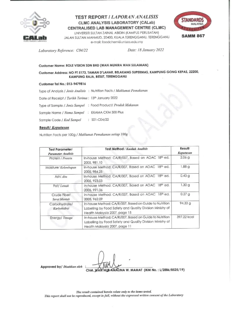 EXAMA terbukti bebas dari sebarang bahan kimia terlarang dan merbahaya kepada pengguna.