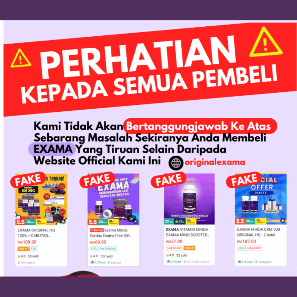 Ini buktinya EXAMA dapat pengesahan dari KKM & JAKIM. Jadi, ianya 100% selamat digunakan.